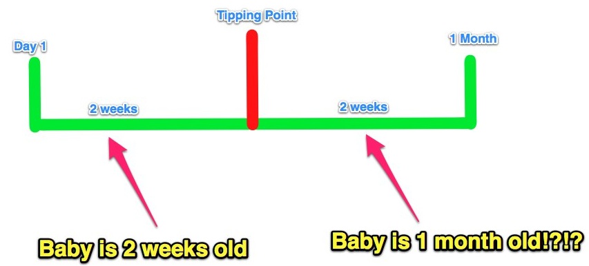 The parents are happy and life goes on. Something magical happens when the baby crosses 2 weeks. Let’s look at it in a little detail. Here is the breakdown of 4 weeks.