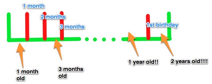 Now even before the baby is 1 month old, he is ALREADY ONE MONTH OLD. Here is another visual to give you some more perspective. This is the timeline for a typical year.