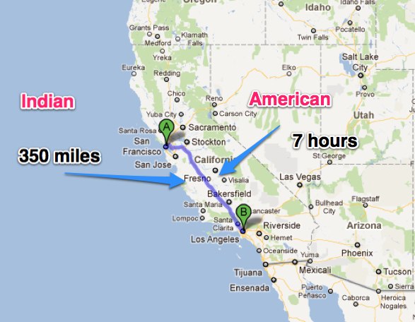 4. Distance: Ok, this one is funny. Ask any American the distance between SF and LA they would say “About 7 hours”. Ask any Indian the same question they would say “About 350 miles”